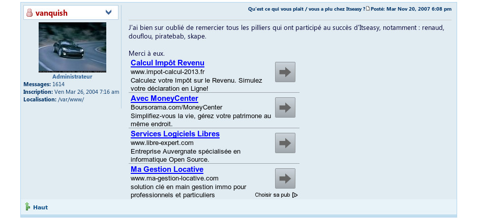 J’ai d’ailleurs participé activement à son développement comme vous pouvez le voir dans ces extraits du forum.